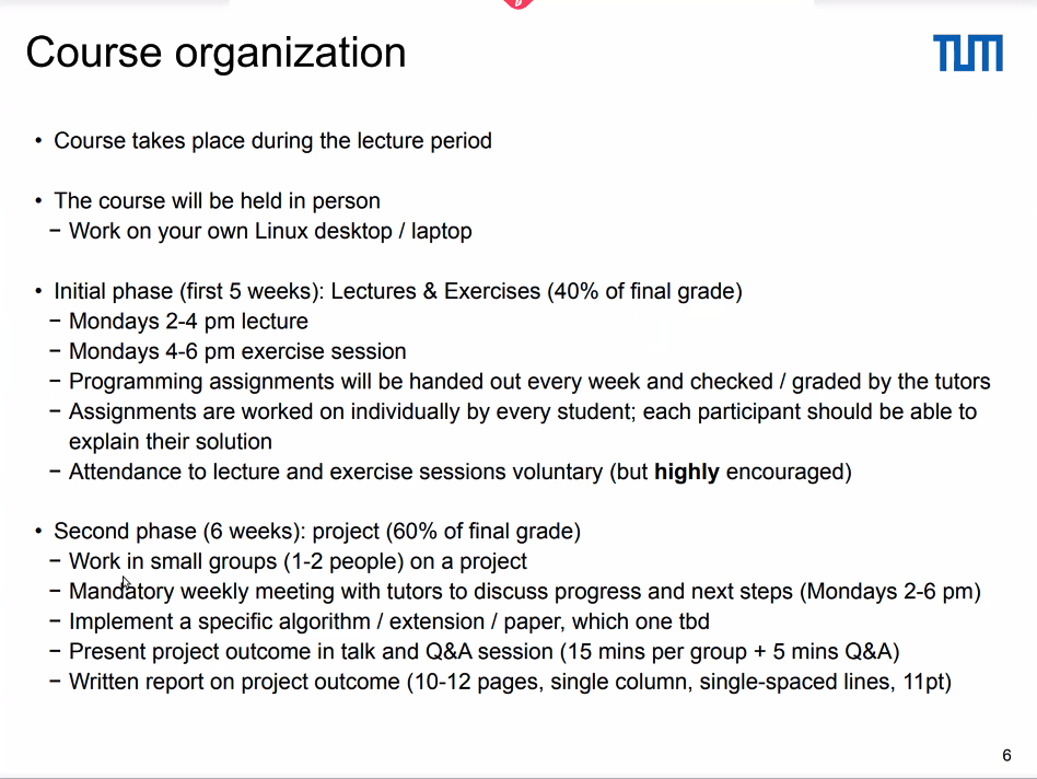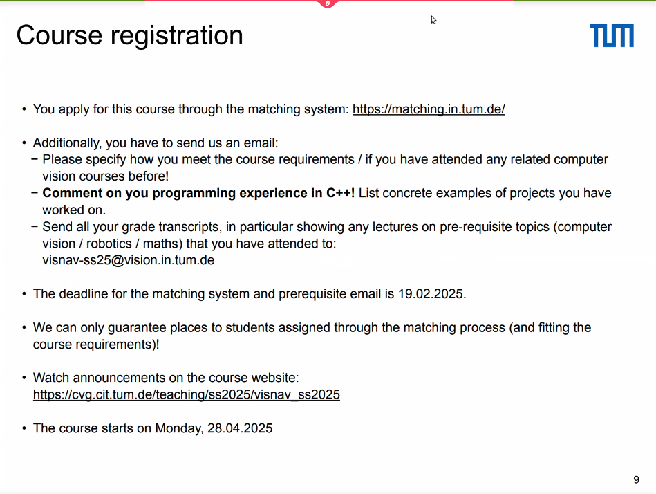 Q: Can a lot of experience with C++ make up for a lack of participation in CV1/2? A: C++ is more important than CV1/2. You have one week for every homework so it is quite intensive and thus hard to learn C++ on the side;